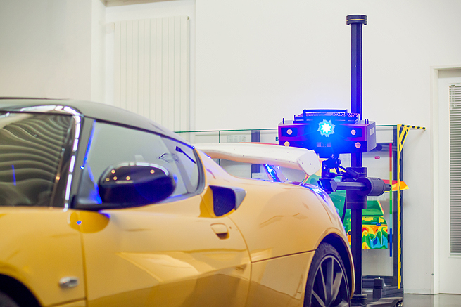 Obsahem spolupráce MCAE Systems bylo 3D měření zadního přítlačného křídla a spojleru vozu Lotus Evora 400. Měření bylo realizováno špičkovým 3D optickým skenerem ATOS III Triple Scan. Tento mobilní měřicí systém je ideální pro přímé skenování objektů s lesklým a tmavým povrchem jako jsou např. plechy, a to při zachování přesnosti a velmi vysokého rozlišení. 3D měření stávajícího křídla na vozidle bylo nezbytné pro budoucí vytvoření prototypu nového křídla s vestavěným brzdovým světlem. Data z měření spojleru pak poslouží pro výrobu nového tvaru krycí mřížky spojleru (pravděpodobně s použitím technologie 3D tisku a v kooperaci s MCAE Systems).
